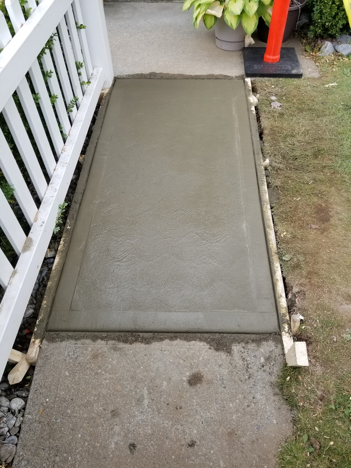 A section of walkway in front of this townhouse residence required removal and replacement after being lifted by tree roots on an awkward angle that created a tripping hazard.